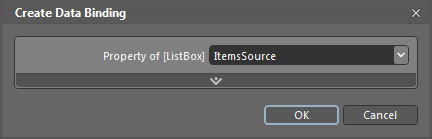 Blend is doesn’t really know what to do with this element so a window will popup asking you what you to what property of the listbox you wish to bind this element. Choose ItemSource.