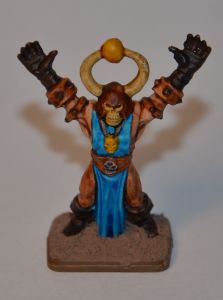 Finally the big boss himself (notice that the gargoyle is under constructing: his wings were missing and are being remade), the witch master. I let my son choose the colour of his robe. The canon states that he should have a red robe as can be seen in the expansion (return of the witch master) but I really like how the bright Talassar blue came out. This mini was the hardest to do, not the least because of how important this fella is in-game. With the other figurines (the heroes not counting) you can always use your best-painted ones to put on the board and only bring it the ‘failed ones’ if there’s a really big army of monsters needed.