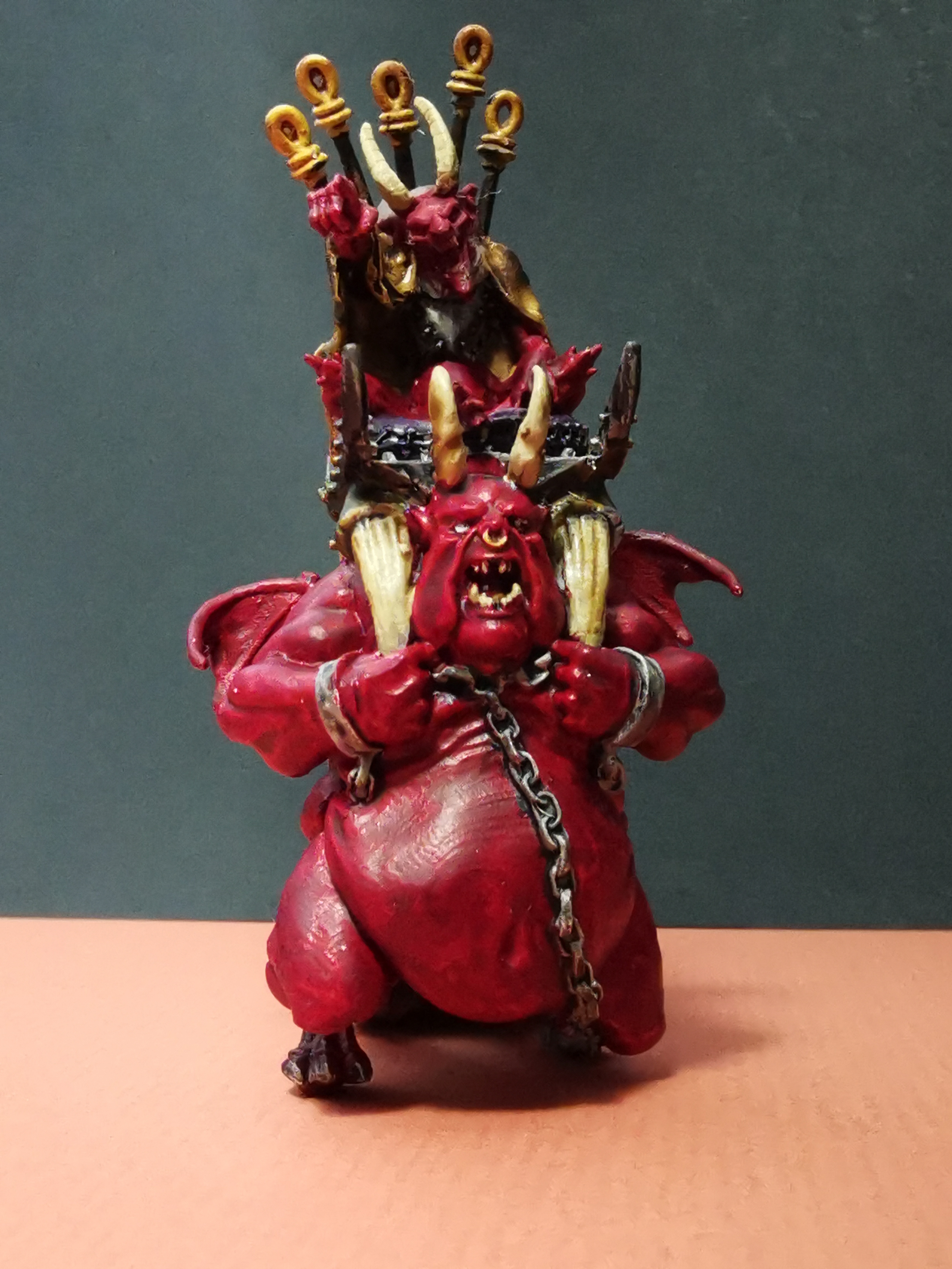 A colleague had an upcoming tournament and was short on time to get his Abyssal miniatures (Mantic Games) finished on time. I helped out by contrast painting his Warlock and a (modified) Flamebearer. Both were interesting challenges: