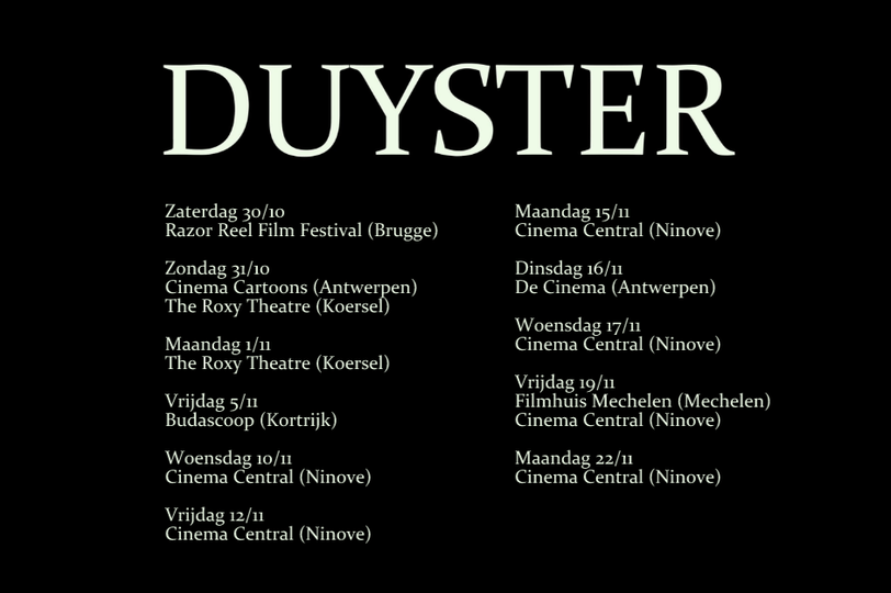 The movie, Duyster, is the child of Thomas Vanbrabant (who wrote the script) and Jordi Ostir (of the infamous horror podcast Klokslag 12) . Two movie buffs who never directed a long movie (Thomas already directed some shorts), but had a dream and wanted to see it fulfilled. They started a crowdfunding campaign, gathered enough funds, surrounded themselves with people they believed in, gave it a good stir, added some spices and blood…so much blood, et voila: a movie was being made!