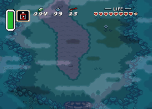 Het scherm begint te bibberen, de kleuren veranderen en ineens sta je op een soort ziggoerat. Aan de horizon: een dreigende achtergrond, badend in een onheilspellende rode gloed. Alles heeft een bruin, vuilgroene kleur. Je bent in de Dark World. Snel doe je je kaart van Hyrule open, die je tegen dan uit het hoofd kent. Wat je ziet doet je mond openvallen. Allez, de mijne toch indertijd. De kaart lijkt grotendeels op hoe ze er zonet uit zag, alleen is alles net iets anders.